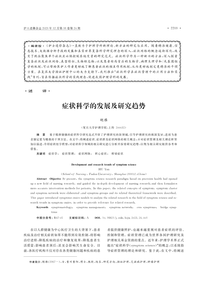 症状科学的发展及研究趋势