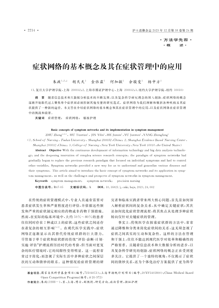 症状网络的基本概念及其在症状管理中的应用