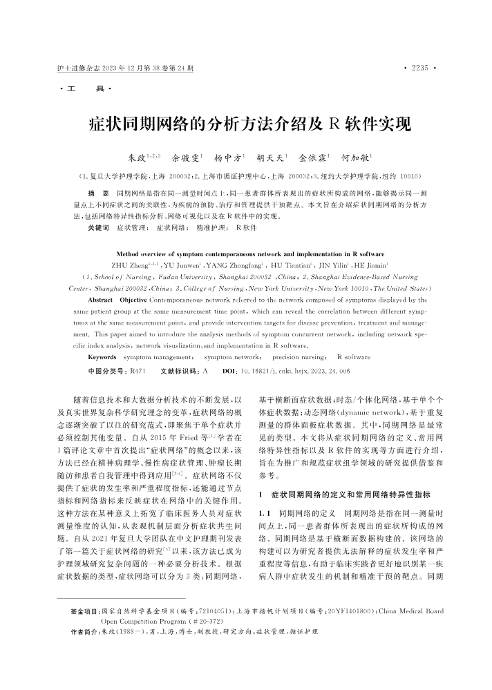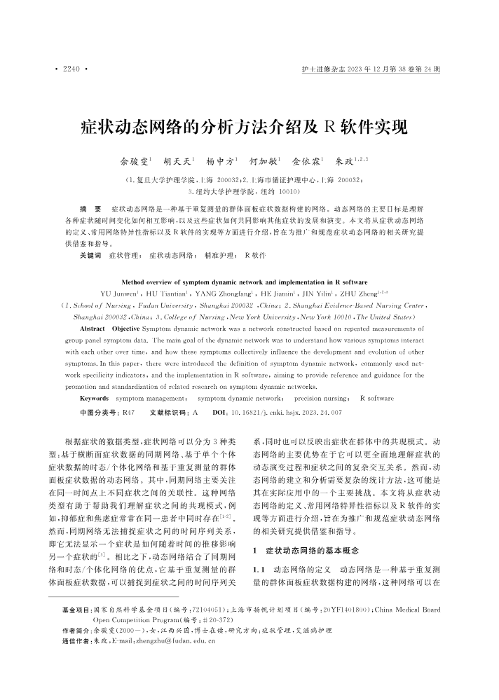 书刊名称:症状动态网络的分析方法介绍及R 软件实现