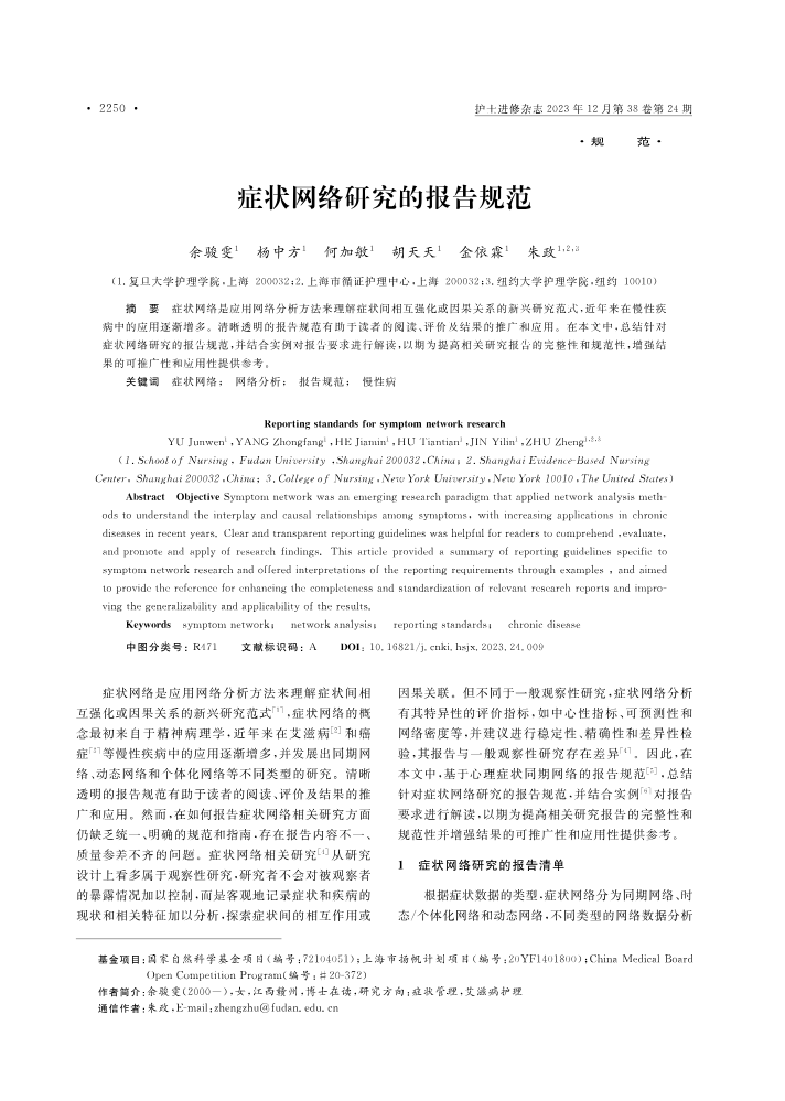 症状网络研究的报告规范
