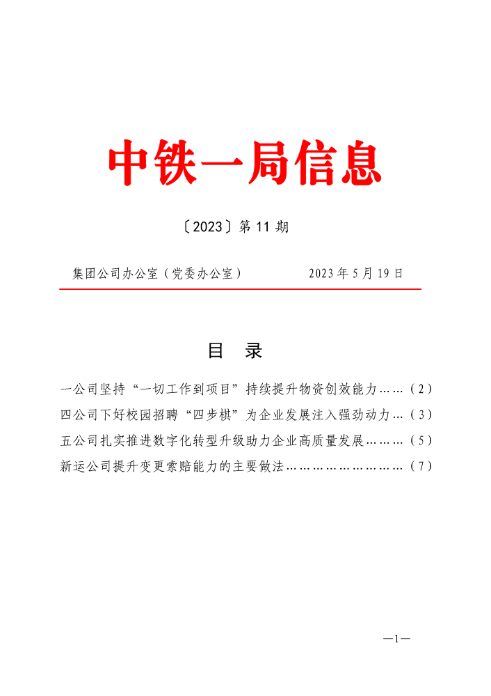 中铁一局信息(2023年第1期)