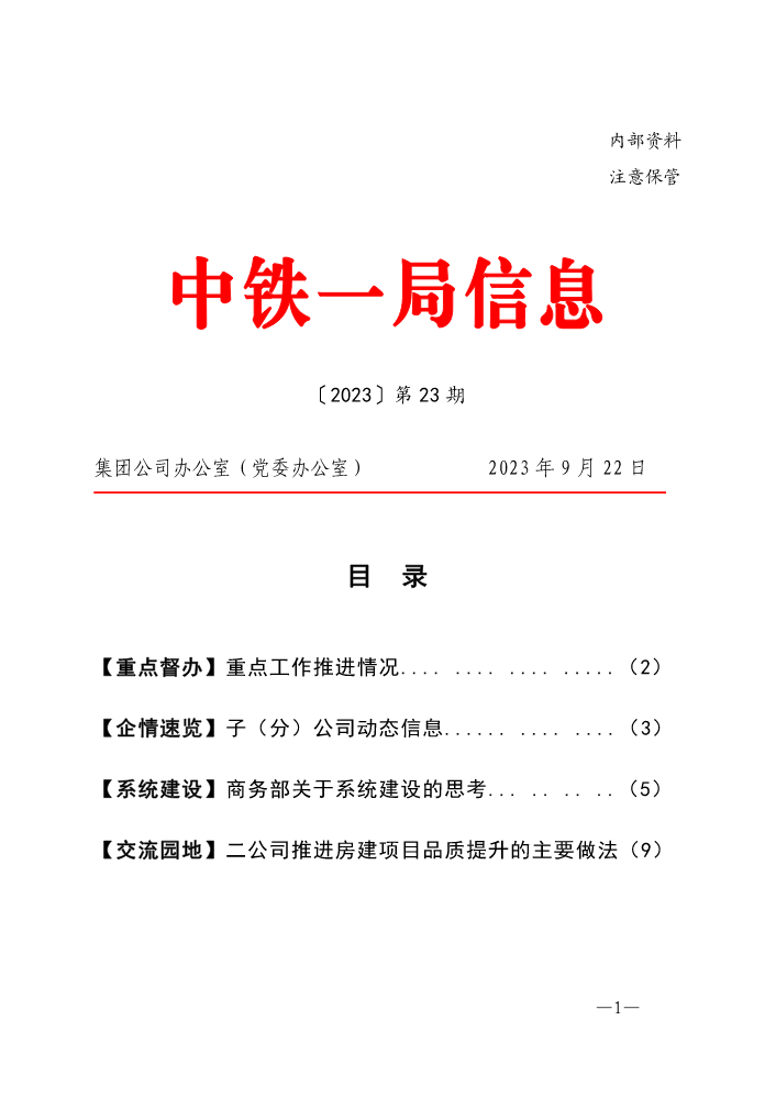 中铁一局信息(2023年第9期)