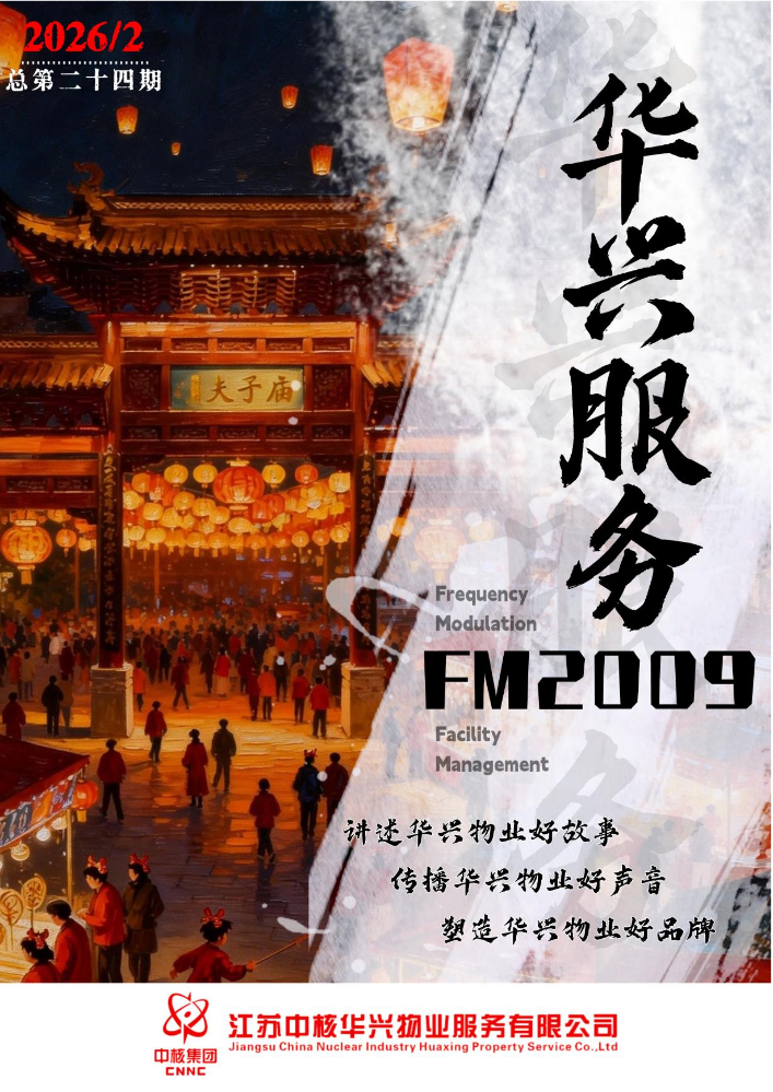 书刊简介:华兴物业创办此月刊,为打破各单位、部门之间信息壁垒,促进信息的跨界融通,分享交流物业公司在安全管理、成本管控、市场开拓、人才培养、党建融入生产经营等方面的工作及活动,进一步加强宣传工作。“FM”即是Frequency Modulation,这是属于华兴物业的声音;“FM”也是Facility Management,是物业行业中的管理科学、建筑科学、行为科学和工程技术的基本原理。公司成立于2009年,2012年正式更名为江苏中核华兴物业服务有限公司。这便是命名为《华兴服务FM2009》的含义。
