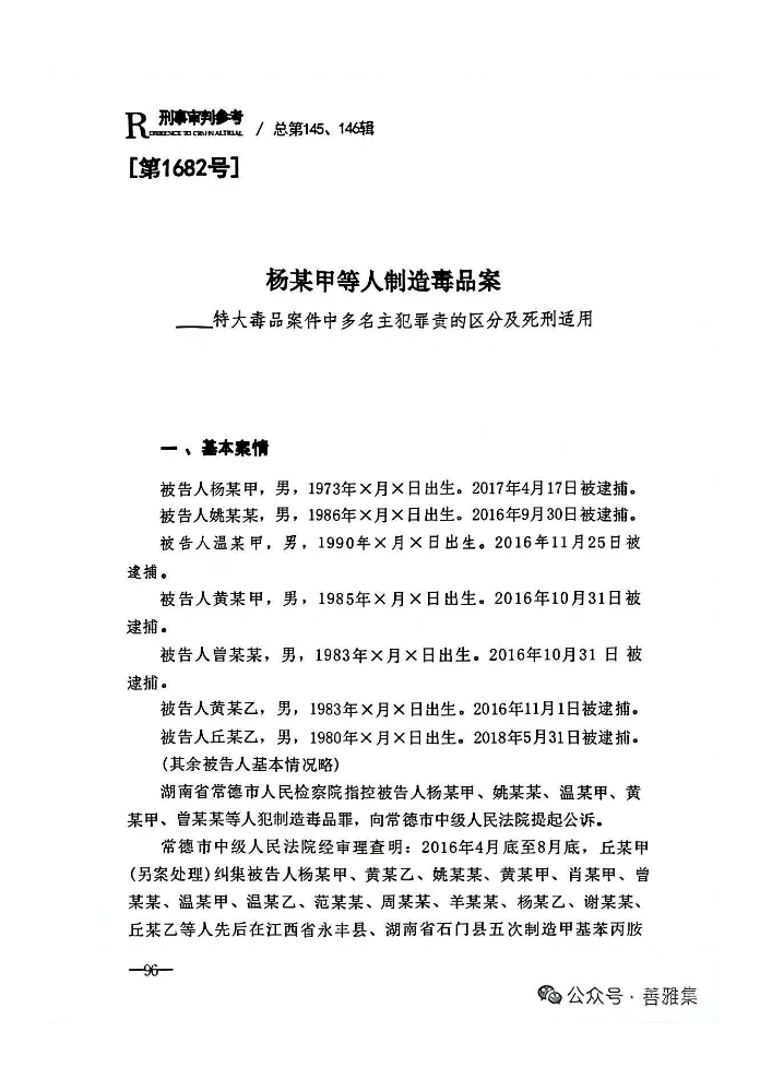 [第1682号]杨某甲等人制造毒品案——特大毒品案件中多名主犯罪责的区分及死刑适用