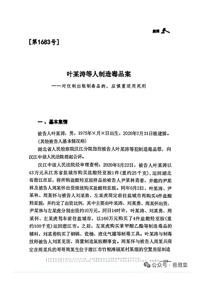 [第1683号]叶某涛等人制造毒品案——对仅制出粗制毒品的,应慎重适用死刑