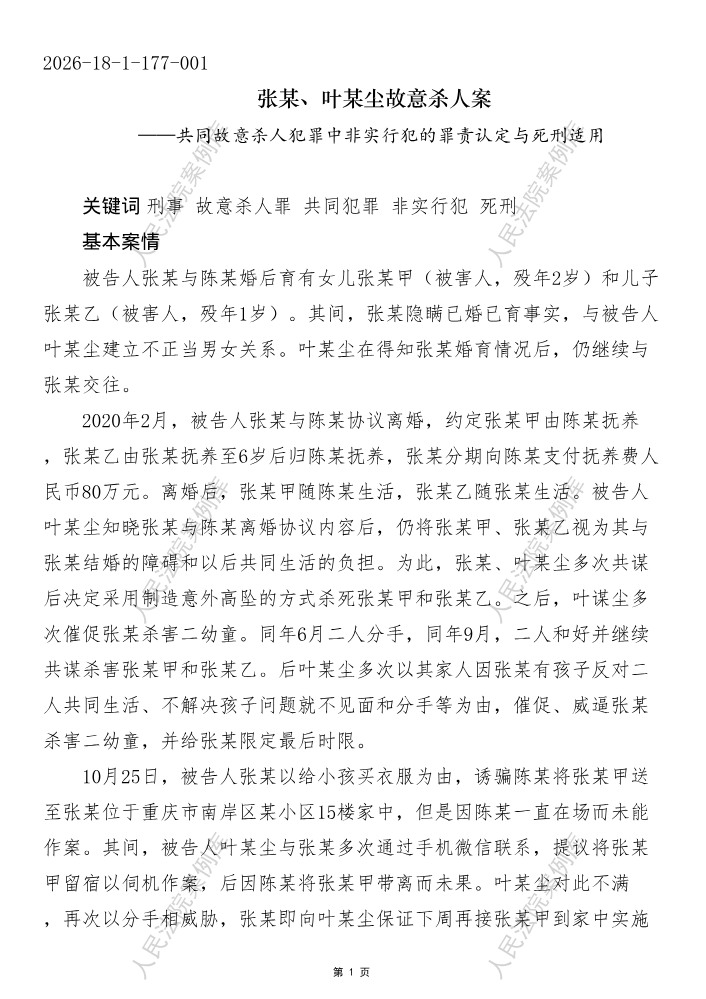 张某、叶某尘故意杀人案——共同故意杀人犯罪中非实行犯的罪责认定与死刑适用