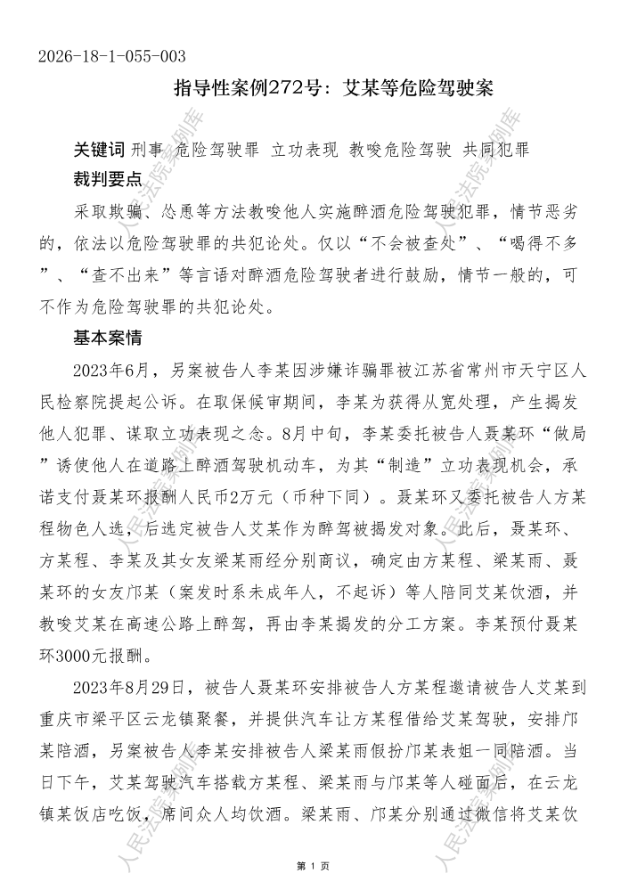 指导性案例272号:艾某等危险驾驶案