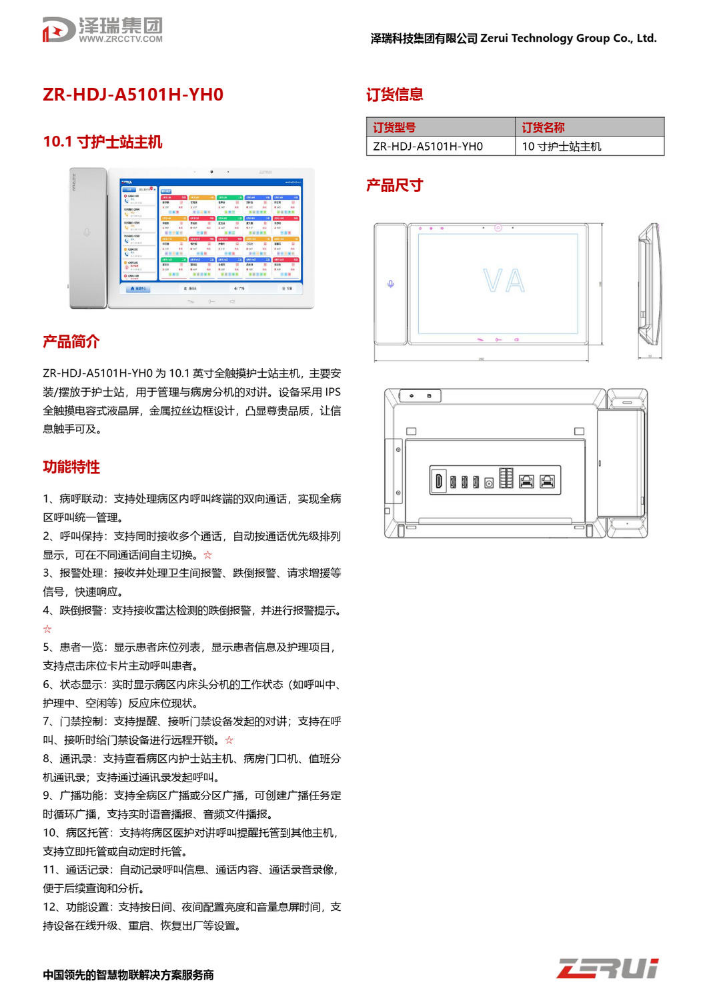 【泽瑞】医护对讲产品规格书