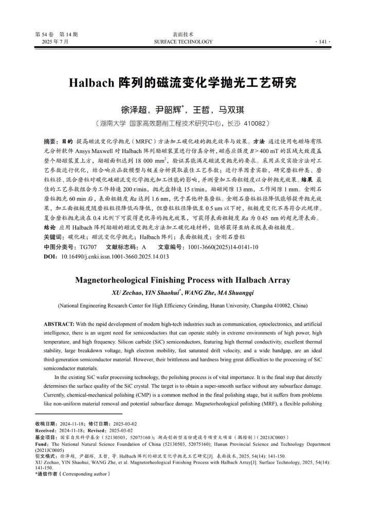 Halbach阵列的磁流变化学抛光工艺研究