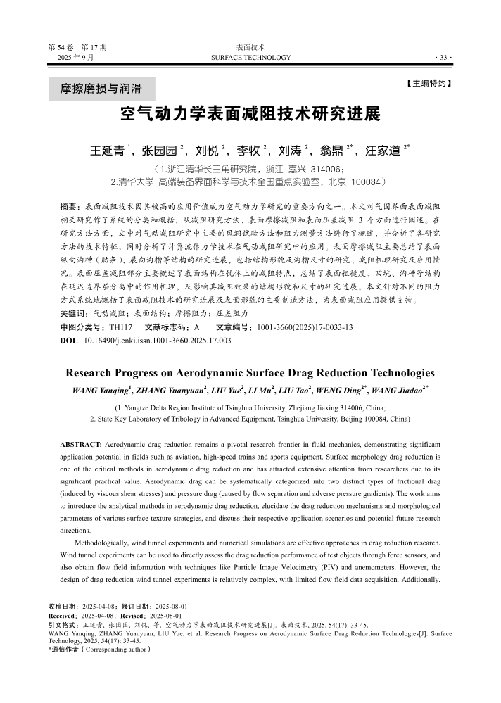 空气动力学表面减阻技术研究进展