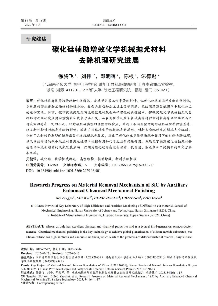 碳化硅辅助增效化学机械抛光材料去除机理研究进展