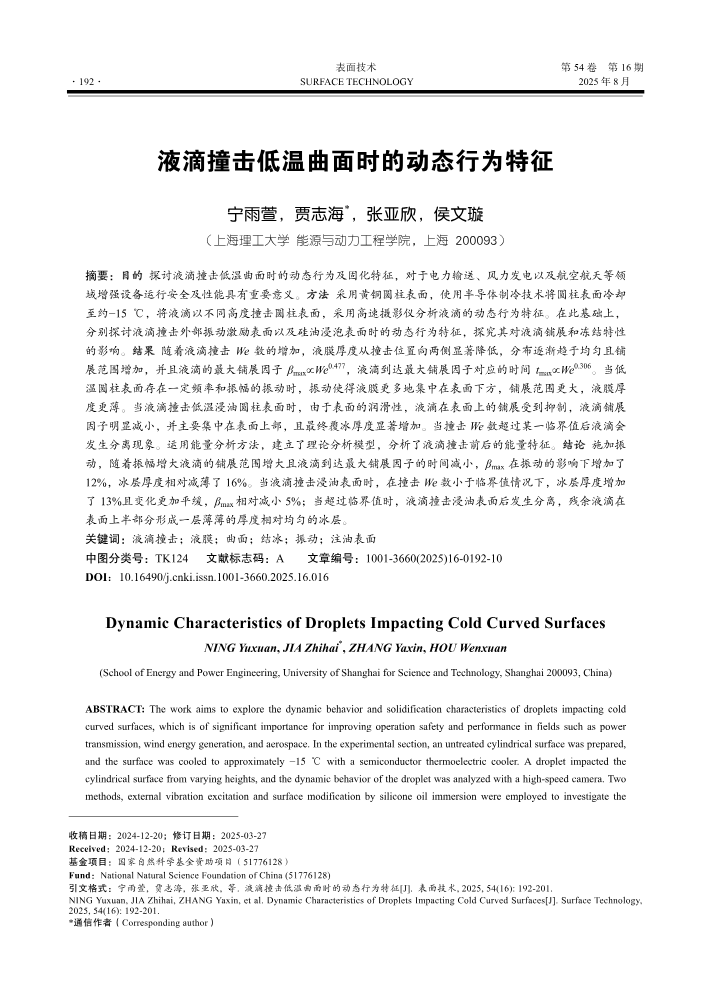 书刊名称:液滴撞击低温曲面时的动态行为特征