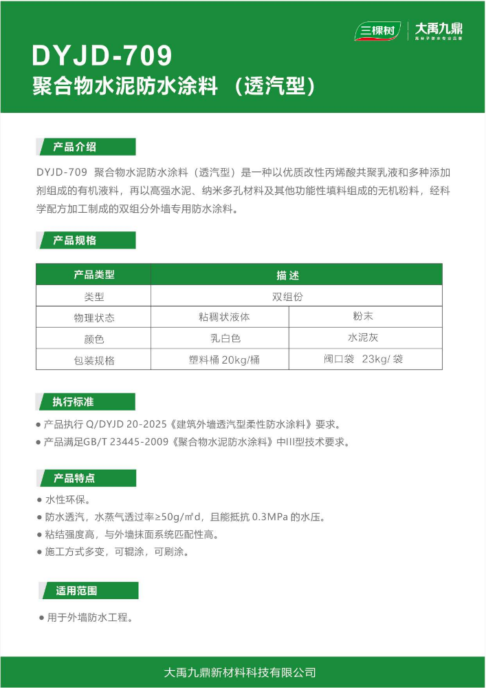 DYJD-709 聚合物水泥防水涂料(透汽型)