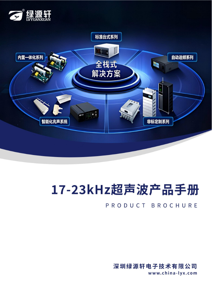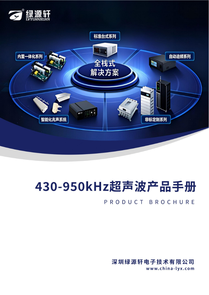 绿源轩,超声应用领域开拓引领者,核心研发团队深耕超声领域二十余年,产品覆盖15~950kHz频段与50~6000W功率,支持最高32频段配置,广泛应用于工业清洗、超声焊接、半导体、医疗、美容等领域,可提供标准化产品与一站式非标定制服务。以下是绿源轩超声波电源用户选型手册合辑,您可以查看并匹配所需的产品。